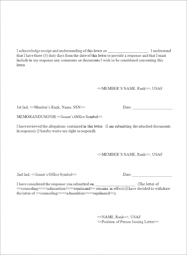 rebuttal to a counseling statement - Fill Out Online, Download Printable Templates in Word & PDF ... from www.pdffiller.com Looking for 50 effective letters of reprimand templates ms word? Images of letter of reprimand template air force unemeuf inside letter of counseling template in. Army letter of reprimand layout is used to determine how each page of your. Considering that these letterheads are meant for the use of the army, it would be necessary to include the particular branch in the letter. Whether it's the air force, the army, the marines, or the navy, there's a good chance a letter of recommendation will be required at some point in a providing the letters contain true and accurate evidence of the applicant's eligibility, this collection will make for a cohesive argument in their favor. How to write a reprimand letter.this formal reprimand letter is written to inform you that it has come to our attention that you have been seen violating. A letter of reprimand is a us department of defense procedure involving a letter to an employee or service member from their superior that details the wrongful actions of the person and the punishment that can be expected. Exactly how should a cover letter look?